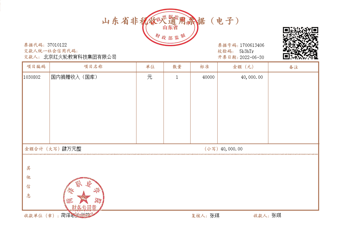 2022年1-9月份,我校共接受捐赠收入174159元,全部为北京红火轮教育科技集团有限公司为支持我院建设和发展自愿捐献的资金,该笔捐赠收入已上交国库,尚未列支。