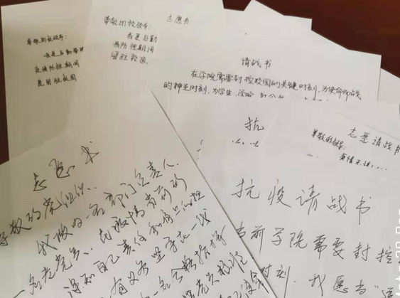图1. 后勤管理处全体教职工纷纷提交抗疫请战书 ![]() 连日来,后勤管理处按照上级要求及学院统一部署,积极筹备校园封闭期间防疫保障物资。在全国防疫物资紧缺情况下,昼夜不分、多方奔走,想方设法备齐备足口罩、消毒液等防疫物资以及校园封闭期间校内办公、生活用品,为在校师生提供一切生活保障。